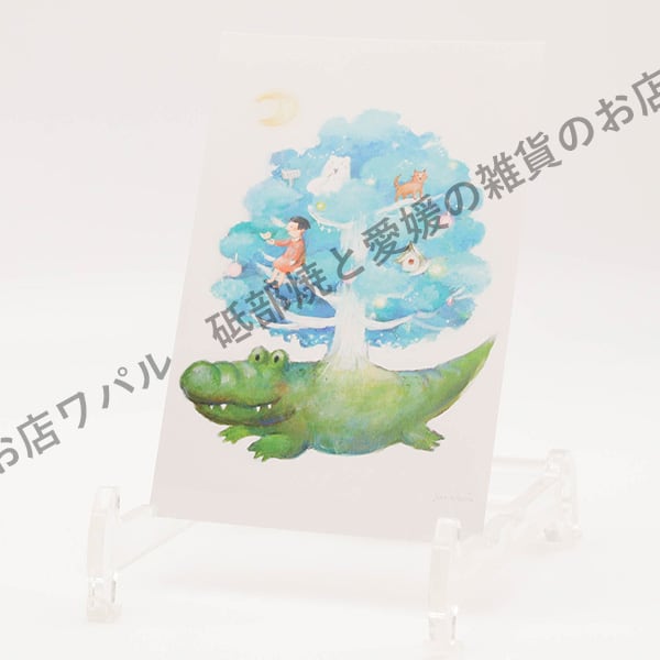 ポストカード おしゃれ かわいい 「三日月ワニの木」 ハガキ デブ猫ちゃん 絵本作家 かのうかりん 加納果林 karin-post-080