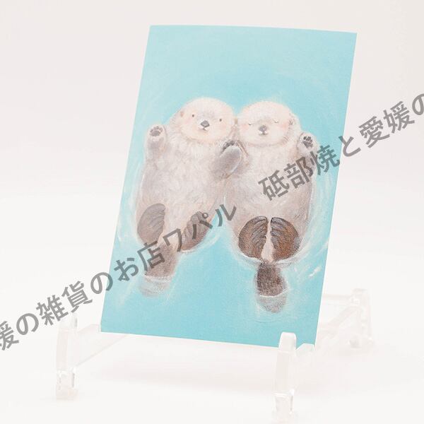 ポストカード おしゃれ かわいい 「なかよしラッコ」 ハガキ デブ猫ちゃん 絵本作家 かのうかりん 加納果林 karin-post-083